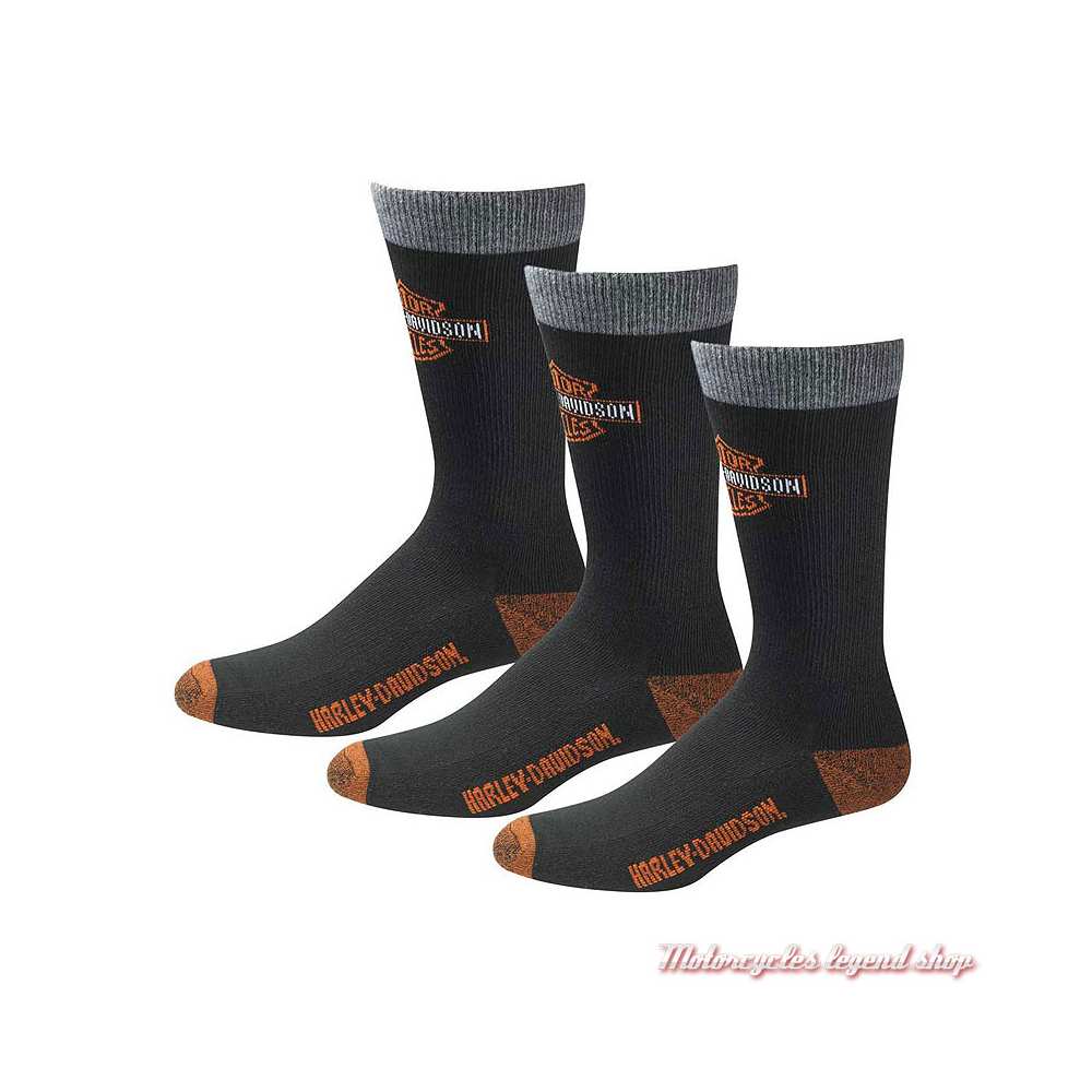 Maille respirante évacuant l'humidité 75 % polyester ultra filé, 20 % nylon, 5 % élasthanne. Hauteur mi mollet. Semelle intérieure coussinée. Soutien de la voûte plantaire. Protection renforcée du talon et des orteils. Graphisme Harley-Davidson® et Bar & Shield®