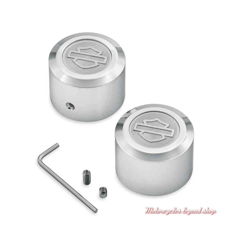 Ces cache-écrous d'axe de roue chromés en billette d'aluminium sont ornés d'un logo Bar & Shield classique. Ces kits faciles à installer comprennent toute la visserie de montage. Vendus par paires.
