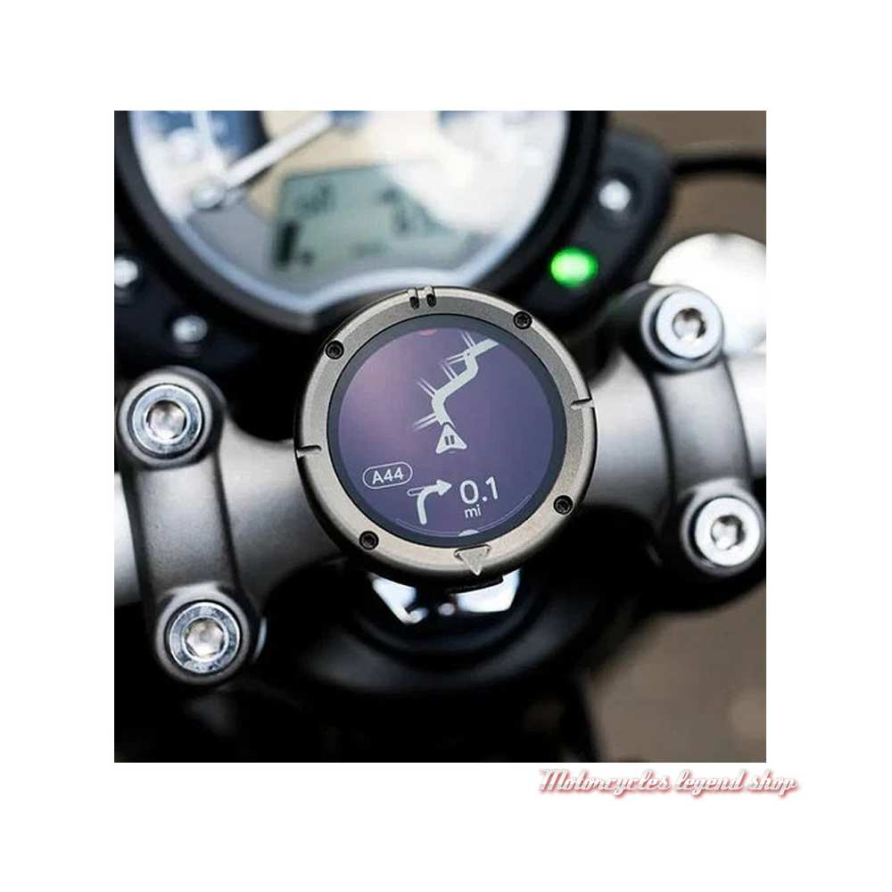 GPS avec écran couleur doté de fonctionnalités améliorées. Boîtier métallique. Connexion au smartphone via application dédiée. Navigation cartographique détaillée avec indication heure d'arrivée et limitations de vitesse. Étanchéité IP67 et résistance aux chocs.