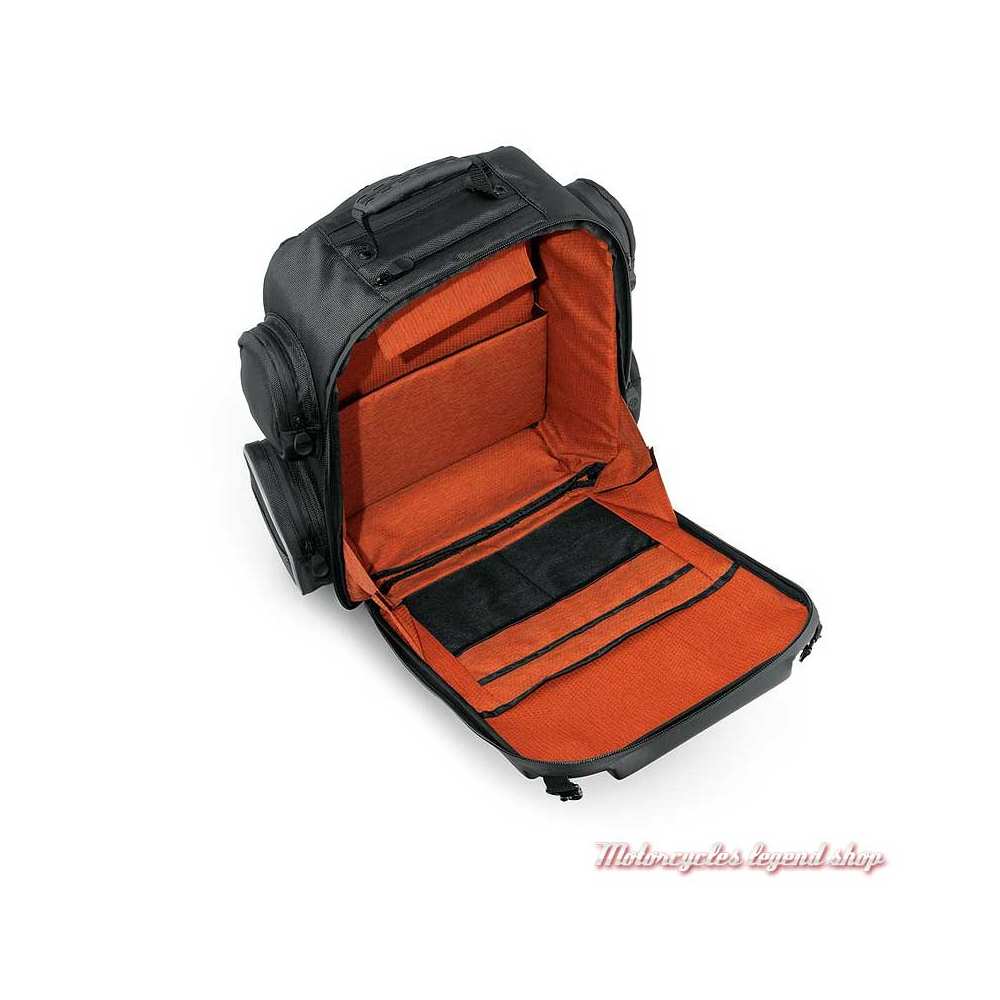 fabriqué en polyester balistique 1680 deniers de première qualité, résistant aux UV, ce sac week-end Harley-Davidson® au dos rembourré comporte à l'intérieur, un compartiment principal spacieux, des poches rembourrées pour ranger votre ordinateur et votre petit matériel électronique, et à l'extérieur, quatre poches latérales, et poches avant. La partie inférieure antidérapante résistante à l’abrasion de chaque sac l’empêche de bouger.
