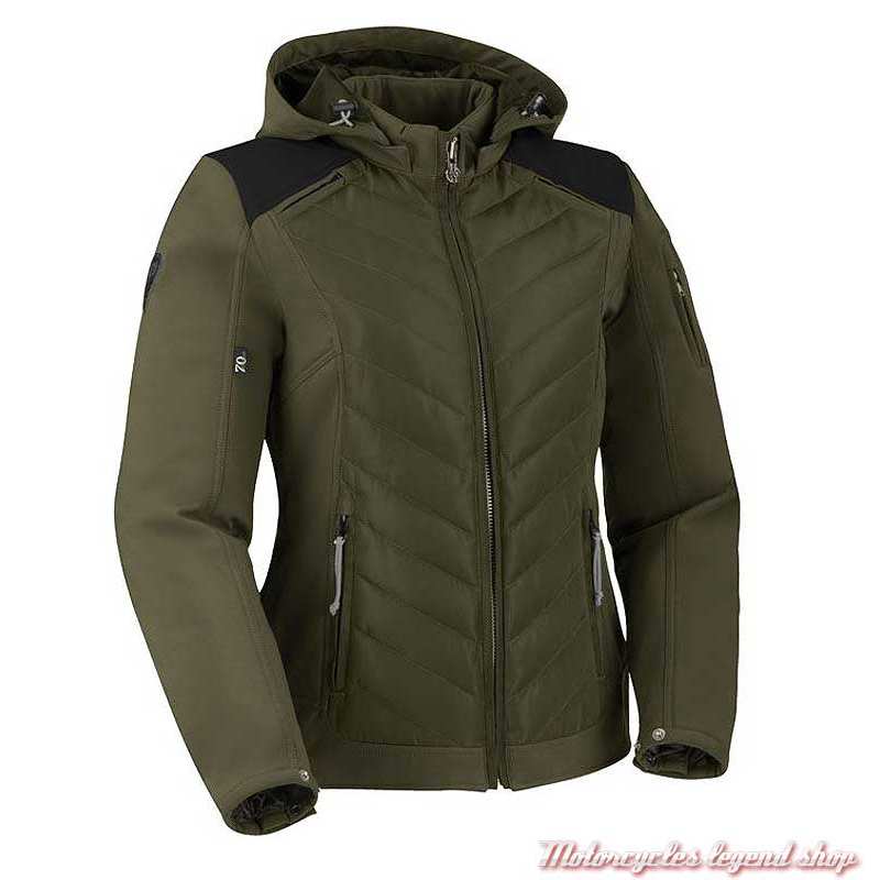 Tissus Softshell et Twiltex. Doublure thermique. Doublure mesh. Membrane étanche et respirante. Fermeture zippée. Poignets zippés. Capuche amovible. Deux poches réchauffe-mains. Poches intérieures. Système de ventilation zippé. Protections Alpha (épaules, coudes) homologuées CE. Emplacement pour protection dorsale (option). Coupe ajustée. Graphisme Segura