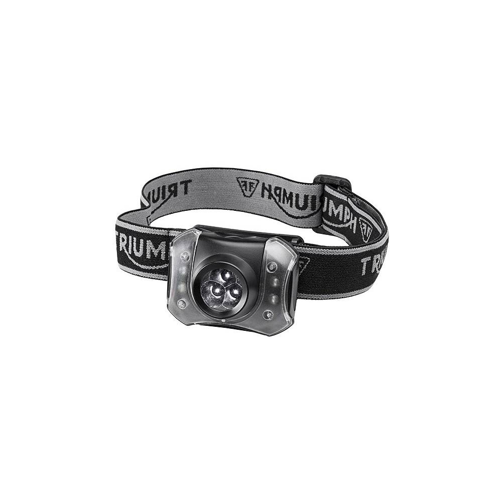 En ABS, éclairage 3 LED blanches, 4 LED rouges. 2 positions d'éclairage. Bandeau élastique noir et gris, logo Triumph