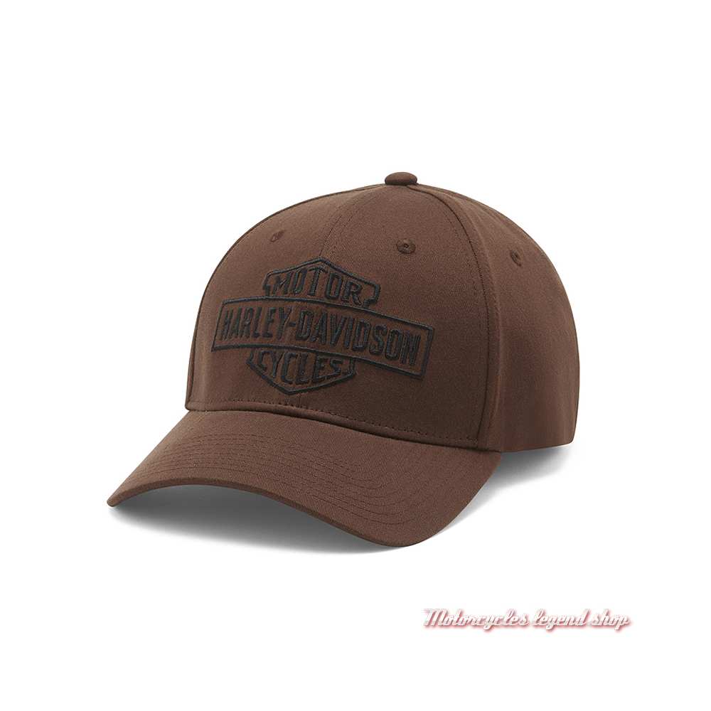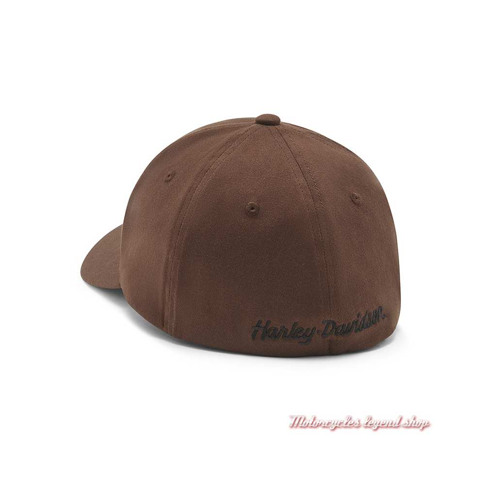 97 % sergé de coton, 3 % élasthanne. Visière incurvée. Graphisme Bar & Shield® antique noir brodé sur l'avant. Arrière fermé en maille 98 % coton et 2 % élasthanne. Bandeau intérieur extensible. Graphisme Harley-Davidson® brodé à l'arrière