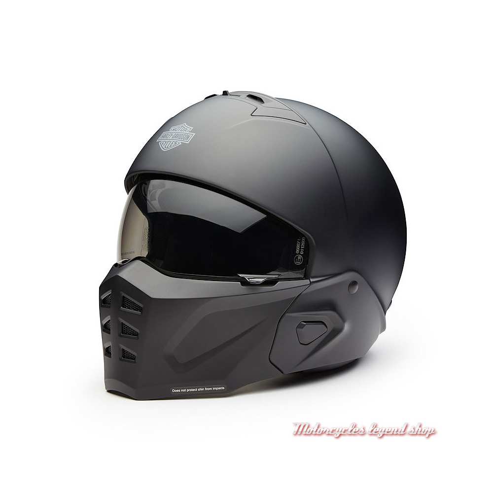 Le casque peut être porté de deux façons et offre un meilleur confort. Pour améliorer votre confort, ajoutez le masque de protection faciale, ou retirez ce masque facial pour avoir un casque 3/4. Graphisme Bar & Shield gris.