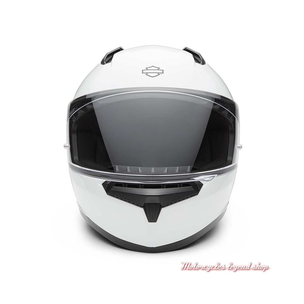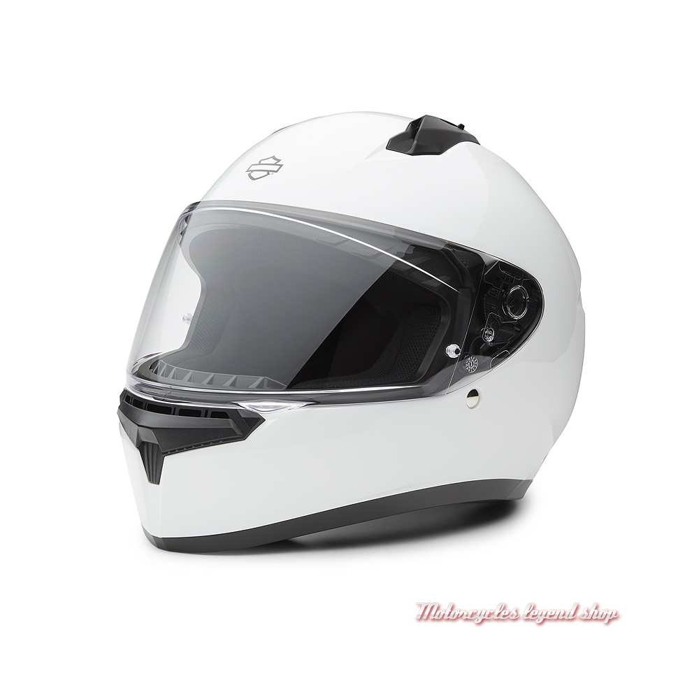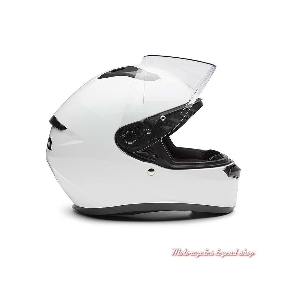 Coque composite en polycarbonate. Système de ventilation permettant de remonter et d'extraire la chaleur et l'humidité. Jugulaire boucle micrométrique. Intérieur amovible et lavable, antibactérien, anti-transpiration. Intérieur conçu pour permettre le port de lunettes. Ecran en polycarbonate incolore, traité anti-rayure, protection UV à 99%. Housse de casque fournie. Graphisme Harley-Davidson®