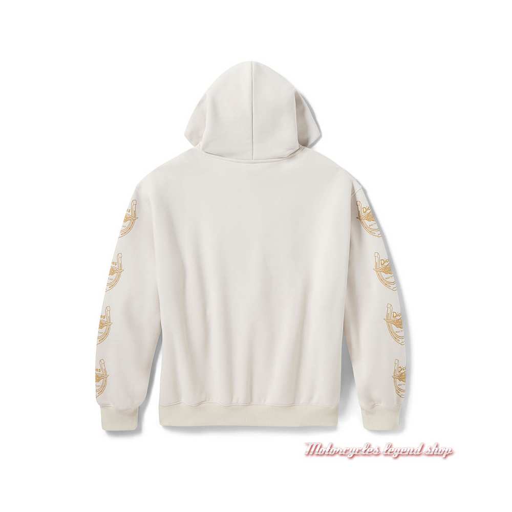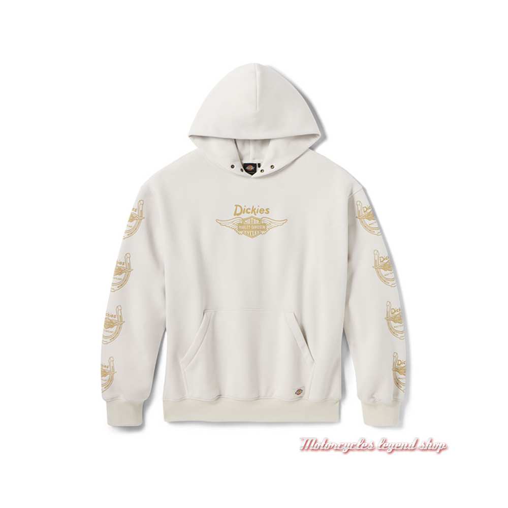 Sweat à capuche 55% coton, 45% polaire polyester coupe unisexe. Capuche avec boutons pression. Poche kangourou. Graphisme Dickies® x Bar & Shield® ailé imprimé sur la poitrine. Graphisme Bar & Shield® ailé, fers à cheval et Dickies® sur les manches. Etiquette cousue Dickies® sur la poche.