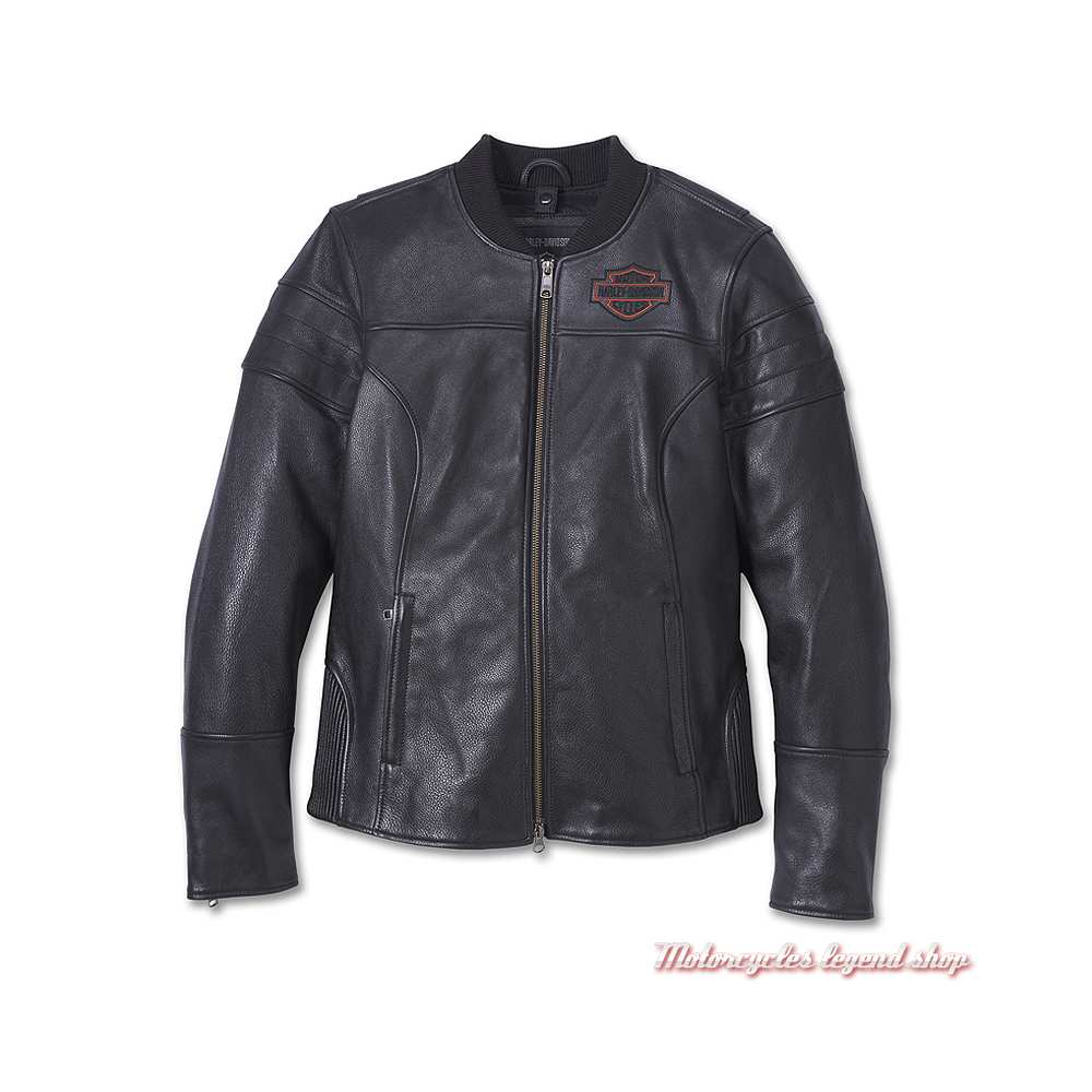 en cuir de vachette mi-lourd, résistant à l'abrasion. Doublure en maille de polyester. Col mao en tricot côtelé. Fermeture zippée devant à double curseur. Poignets zippés, deux poches réchauffe-mains zippées et une poche intérieure. Manches pré courbées. Panneaux latéraux extensibles à la taille. Aérations sous les bras. Protections au niveau des coudes et des épaules D30 Ghost. Poche pour protection de dos (protection de dos D3O Viper 98105-22VR vendue séparément). Graphisme Bar & Shield® brodé sur la poitrine gauche. Graphisme Harley-Davidson® brodé dans le dos. Sweatshirt à capuche amovible 60% coton, 40% polyester.