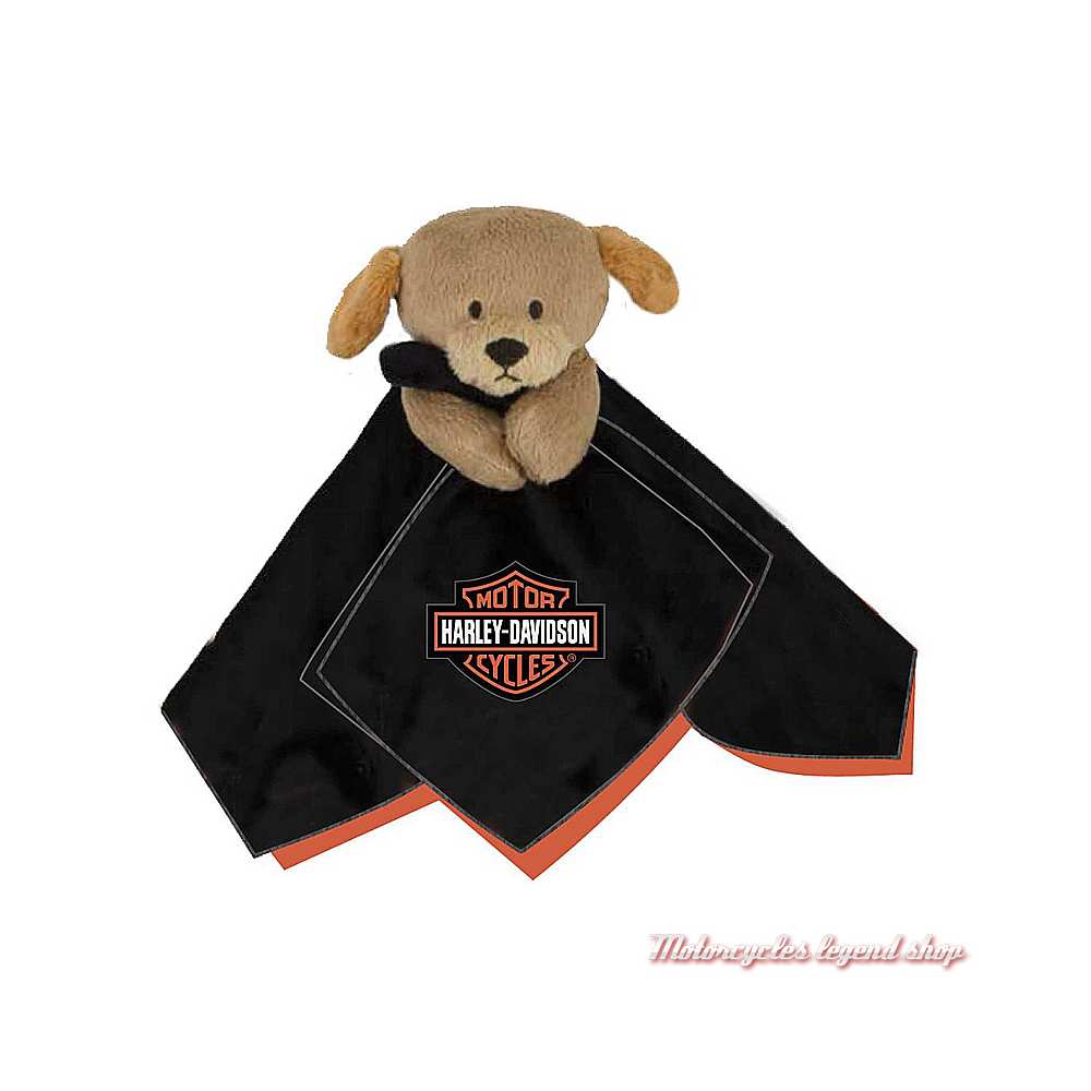 chiot peluche, carré de tissu velours peluche et polyester. Graphisme Bar & Shield®. Homologué CE