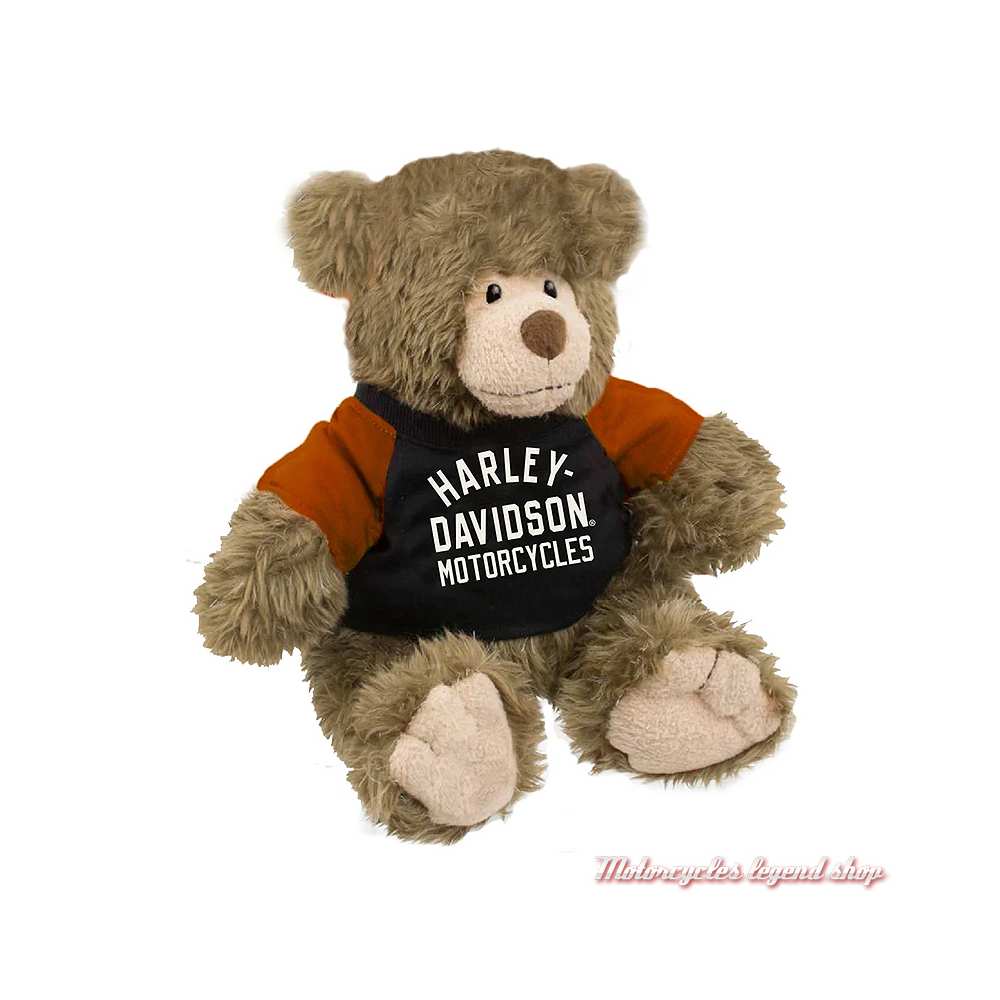 en peluche, polyester, avec tee-shirt Harley-Davidson®, orange et noir. Homologué CE