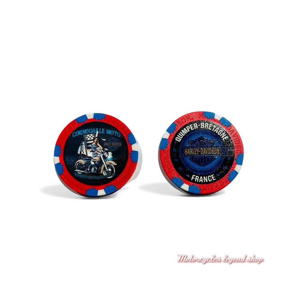 jeton à collectionner. logo bar & Shield Harley-Davidson Quimper Bretagne d'un côté, notre Bigoudène Cornouaille Moto en couleur de l'autre côté.