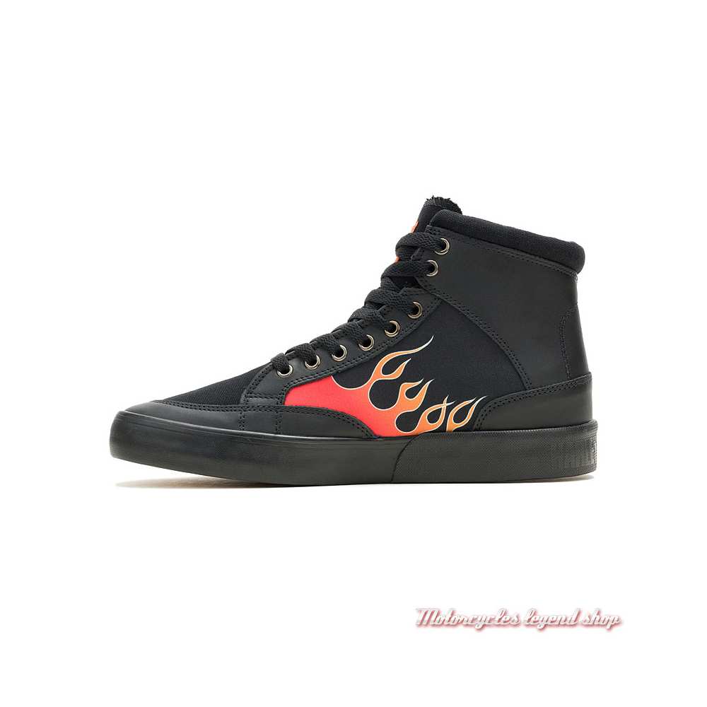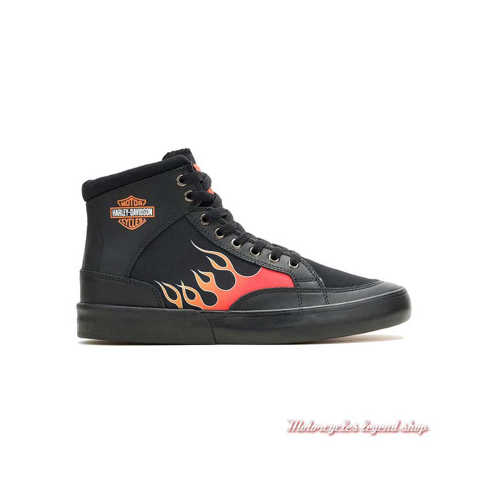 Baskets à lacets en toile canvas. Intérieur textile. Semelle caoutchouc. Graphisme Bar & Shield® et flammes. Graphisme Harley-Davidson sur et sous la semelle.