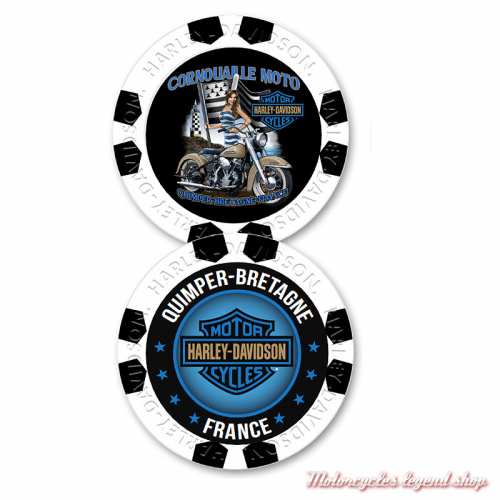 emblème à coudre, brodé Harley-Davidson® Cornouaille Moto Quimper, graphisme pin'up et drapeau breton