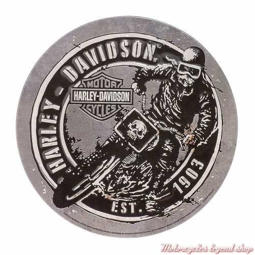 ronde, en tôle emboutie, décorative, graphisme texte Harley-Davidson® en forme de skull Willie G.