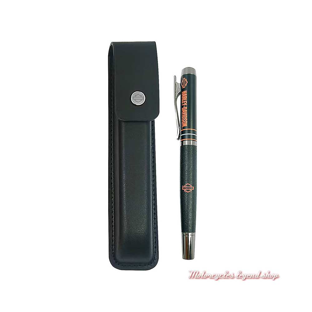 à bille, encre noire, rechargeable, avec capuchon amovible. Aspect faux cuir. Logos Harley-Davidson® et Bar & Shield®