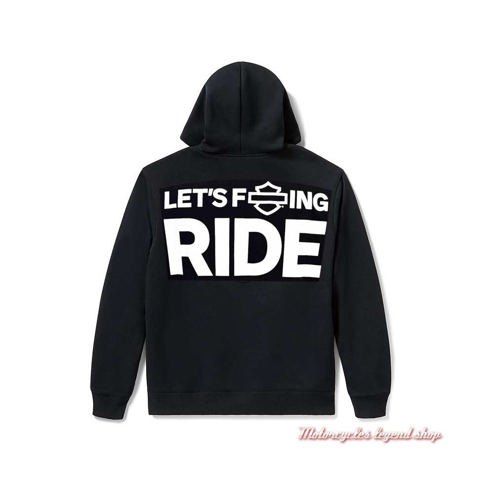 Sweat à capuche 100% coton éponge lourd, lavé pour plus de douceur, coupe décontracté unisexe. Poche kangourou. Graphisme Bar & Shield® imprimé sur la poitrine gauche. Graphisme Harley-Davidson® Let's F ing Ride imprimé dans le dos.