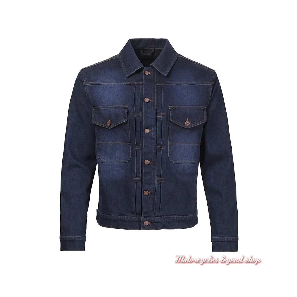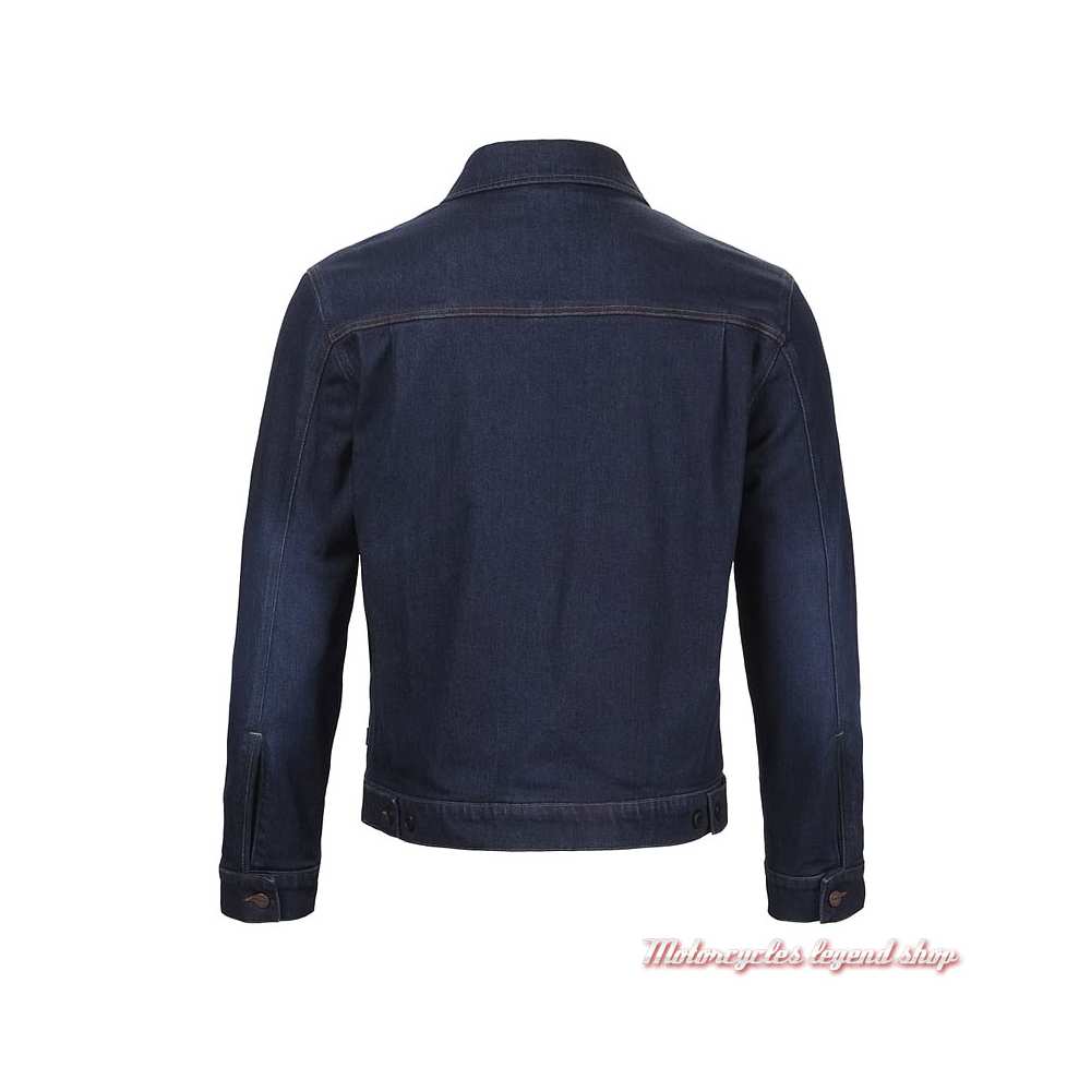 Blouson en denim Armalith™ mono épaisseur, 75% coton, 24 % polyamide, 1 % élasthanne. Doublure en maille respirante. Taille réglable. Fermeture zippée et boutonnée. Poignets boutonnés. Deux grandes poches de poitrine à rabat boutonnées. Col chemise. Protections D3O Ghost™ amovibles certifiées CE norme EN 1621-1 au niveau des épaules et des coudes. Protection dorsale Stealth Viper en option (vendue séparément). Graphisme Triumph sur les boutons en cuivre