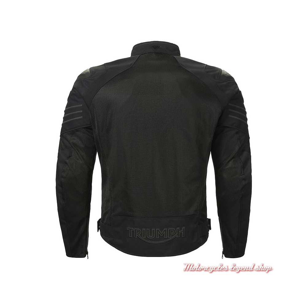 Blouson en maille Airflow, doublure en maille. Doublure amovible imperméable TriTech 10K. Empiècements extensibles TriStretch aux emplacements stratégiques. Taille réglable. Fermeture zippée. Zips aux poignets. Deux poches réchauffe main zippées. Col officier, fermeture à bouton pression. Protections D3O amovibles au niveau des épaules et des coudes, certifiés CE selon la norme EN 1621-1. Protection dorsale amovible D3O BP4, certifiée CE selon la norme EN1621-2. Zip de connexion aux pantalons de la gamme. Graphisme Triumph dans le bas du dos et inserts réfléchissants