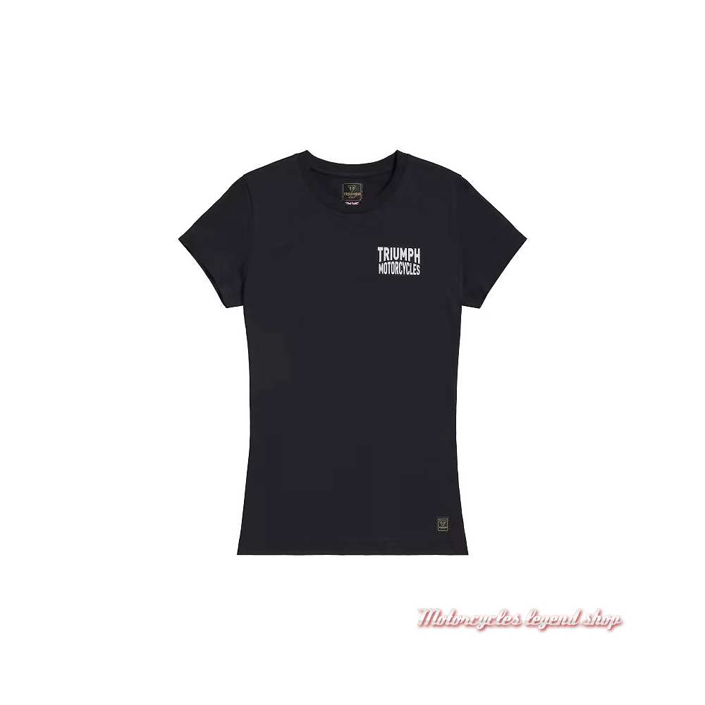 100% coton, col rond, manches courtes, graphisme Triumph imprimé sur la poitrine gauche et Triumph Motorcycles et skull dans le dos.