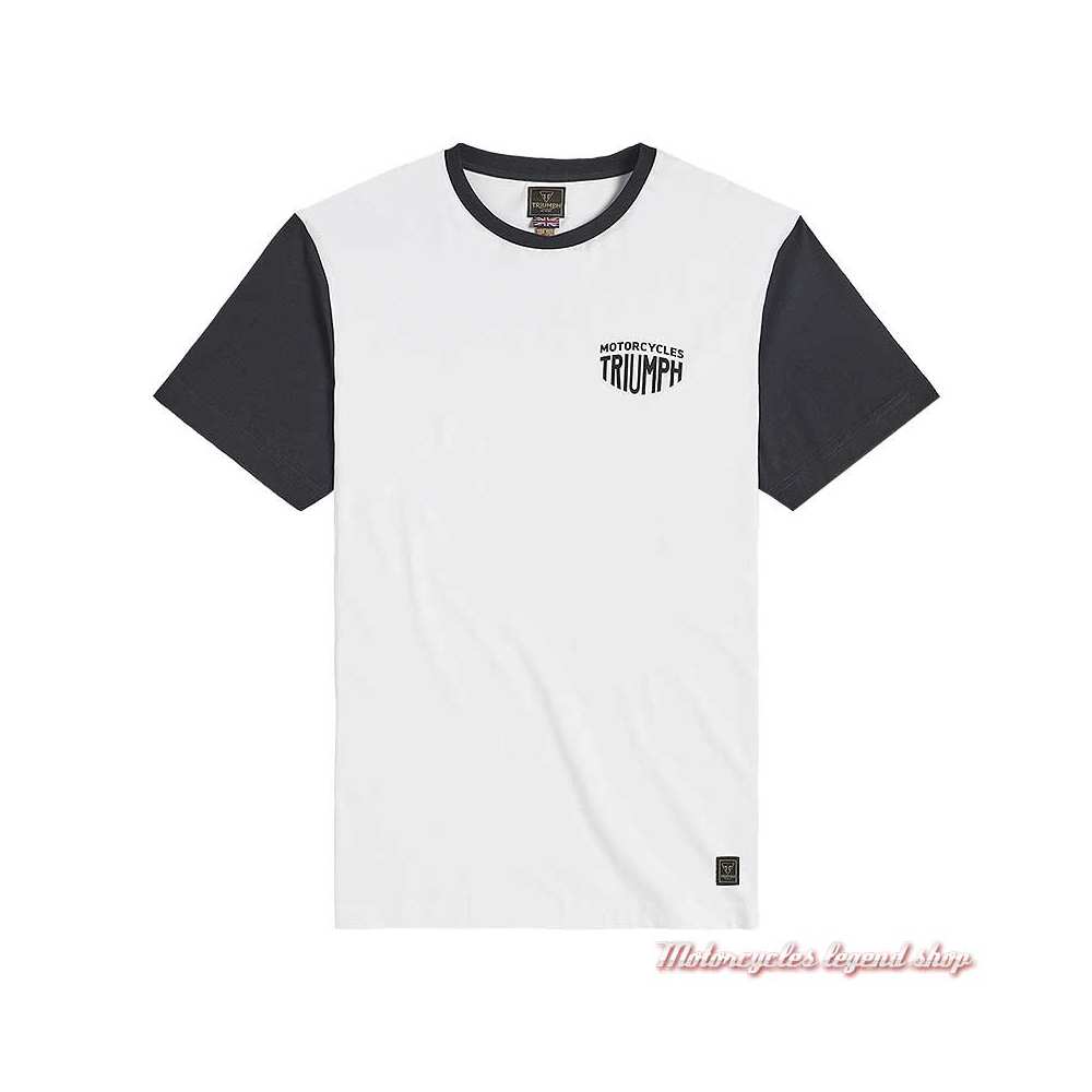 100% coton, col rond, manches courtes, graphisme Triumph imprimé sur la poitrine gauche et graphisme Triumph Workshop dans le dos.